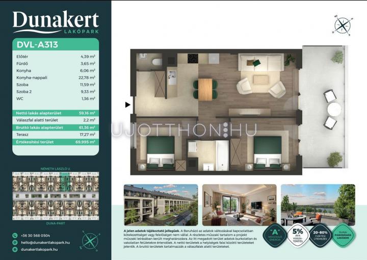 3 szobás 59 m2-es Lakás Dunakert - Vác, Kisvác-Iskolaváros, Németh László utca