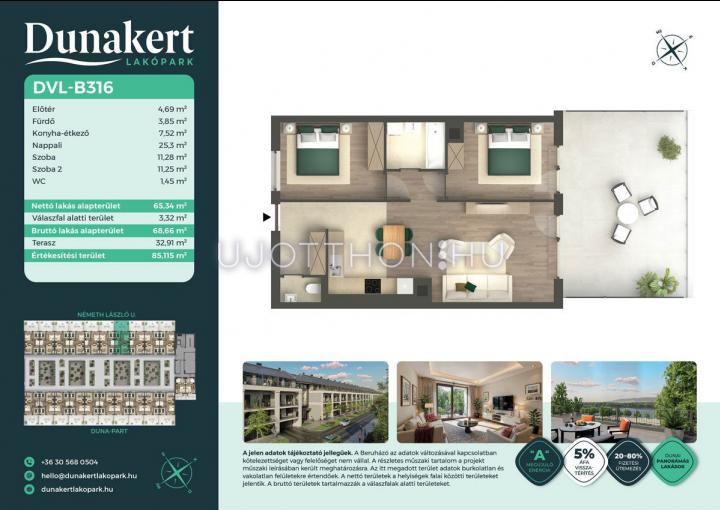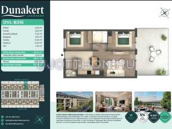 A Dunakert Lakópark Vác északi részén, a Németh László utcában épül, egy csendes, rendezett városrészben, közvetlenül a Duna-part mellett. A négyszintes épületben 152 modern, energiahatékony lakás kap helyet. A praktikus stúdióktól a nappali + több hálószobás családi otthonokig. Az emeleti lakásokhoz tágas terasz, a földszintiekhez saját kert tartozik, így minden lakó számára biztosított a privát kültéri tér és a természetkapcsolat.