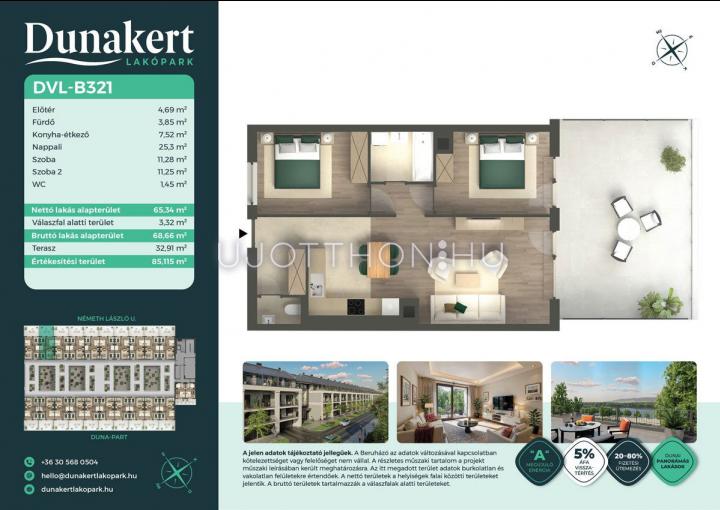 3 szobás 65 m2-es Lakás Dunakert - Vác, Kisvác-Iskolaváros, Németh László utca