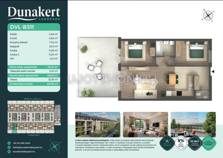 3 szobás 65 m2-es Lakás Dunakert - Vác, Kisvác-Iskolaváros, Németh László utca