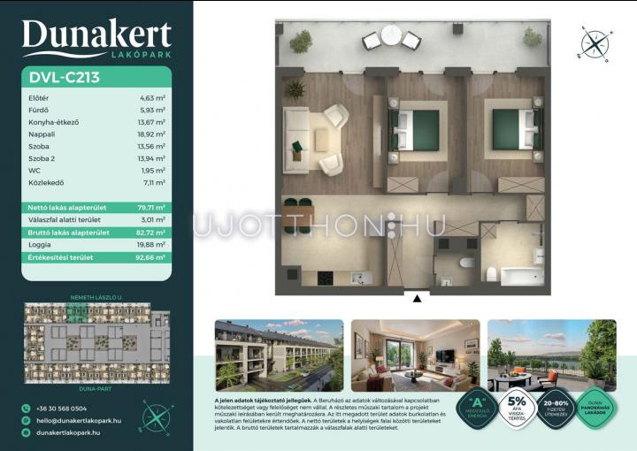 3 szobás 80 m2-es Lakás Dunakert - Vác, Kisvác-Iskolaváros, Németh László utca