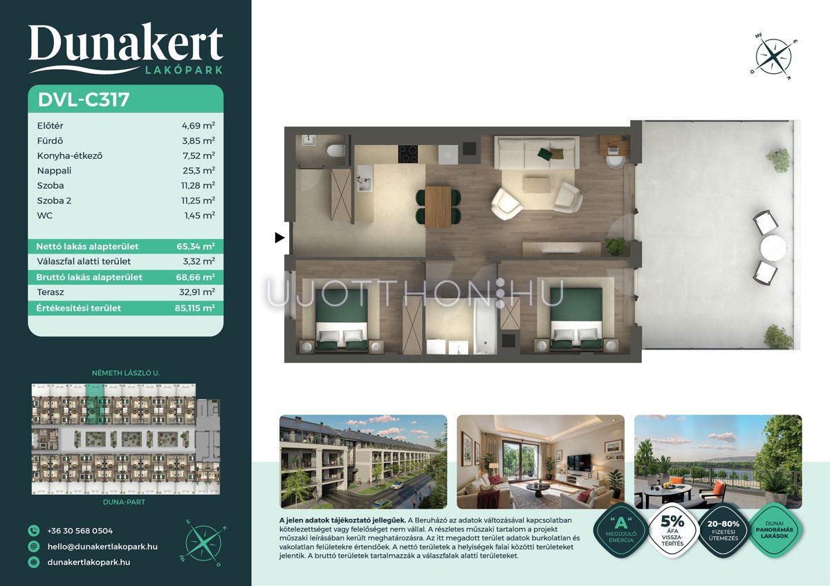 3 szobás 65 m2-es Lakás Dunakert - Vác, Kisvác-Iskolaváros, Németh László utca